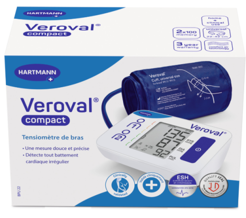 Le tensiomètre Veroval® compact bras est préconisé pour la mesure de la pression artérielle au niveau du bras.